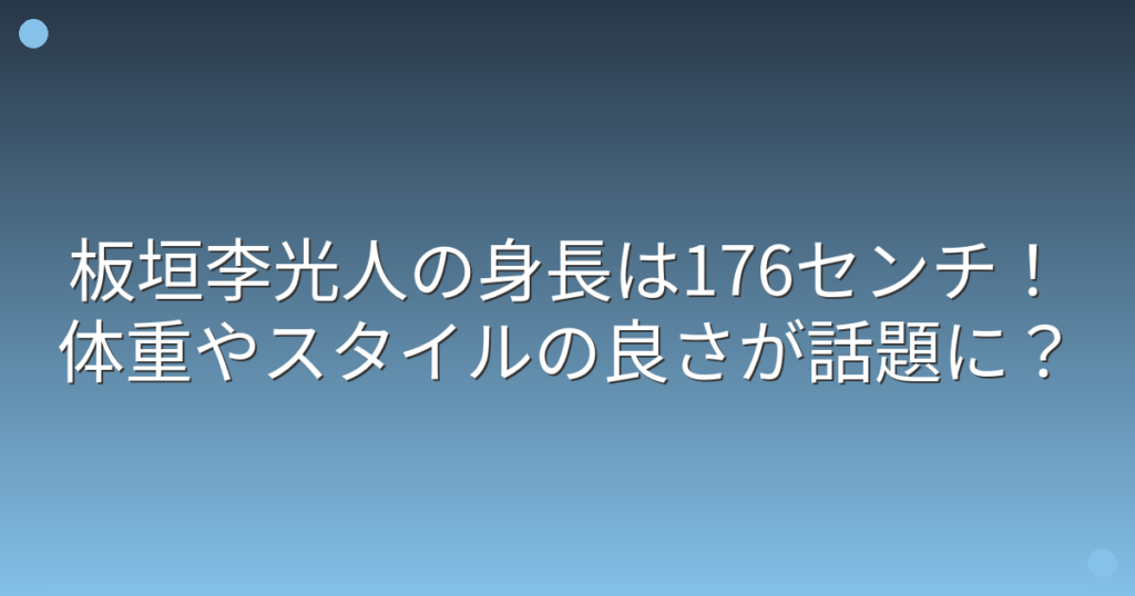 俳優として活躍する板垣李光人さんの身長が話題になっていますね。 スタイルの良さが注目される板垣李光人さんですが、実際の身長や体型はどうなのでしょうか。 そこで今回は、板垣李光人さんの身長や体重、スタイルについて詳しく見ていきましょう! 板垣... -