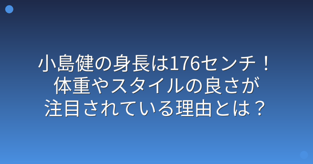 俳優として活躍する小島健さんの身長やスタイルが話題になっていますね。 テレビや映画で見かける小島健さんのスタイルの良さに注目が集まっています。 そこで今回は、小島健さんの身長や体重、スタイルの良さについて詳しく見ていきましょう! 小島健の身... -