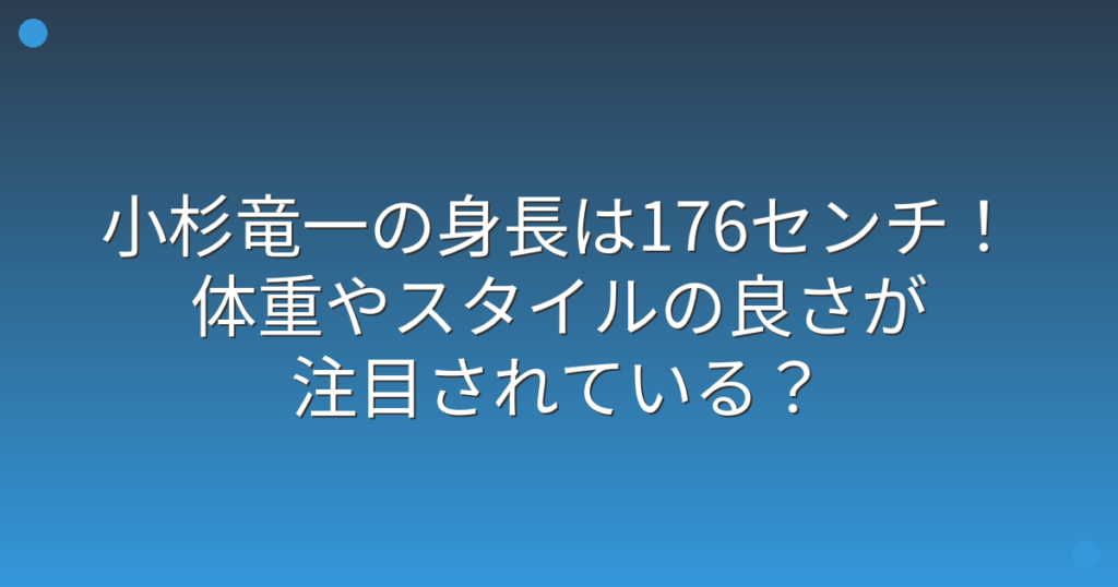小杉竜一の身長は176センチ!体重やスタイルの良さが注目されている?