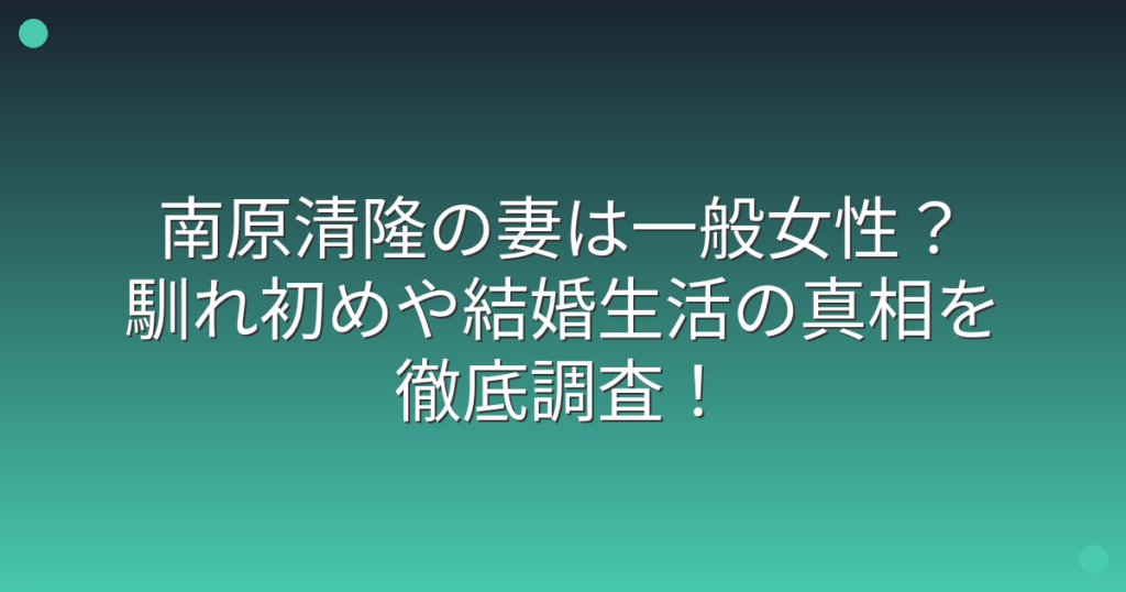 南原清隆の妻は一般女性?馴れ初めや結婚生活の真相を徹底調査!