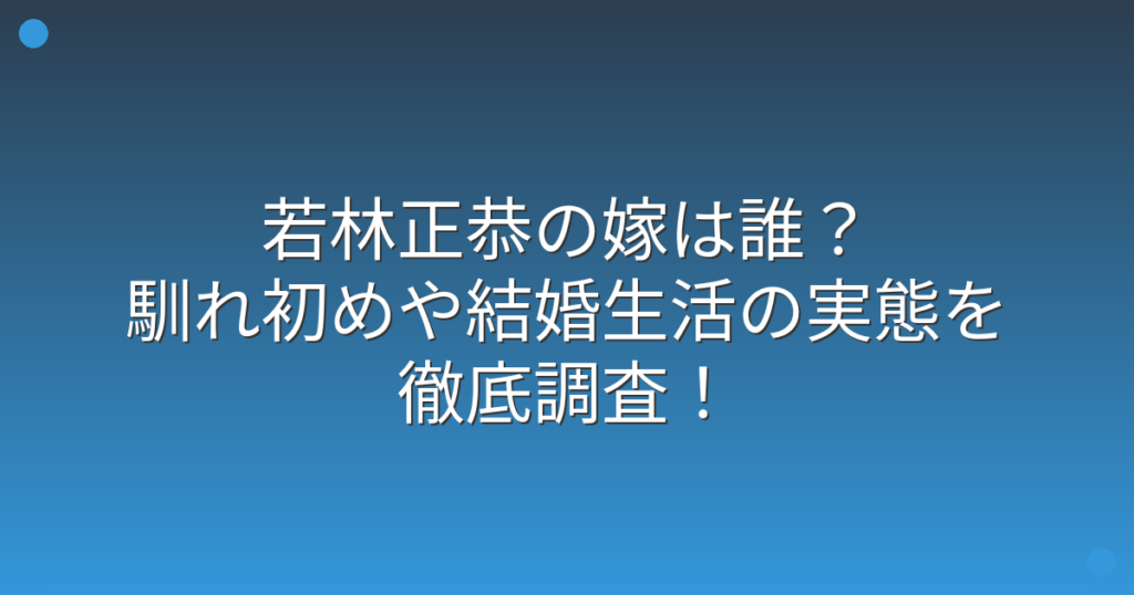 若林正恭の嫁は誰?馴れ初めや結婚生活の実態を徹底調査!