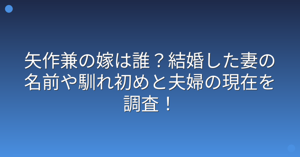 矢作兼の嫁は誰?結婚した妻の名前や馴れ初めと夫婦の現在を調査!