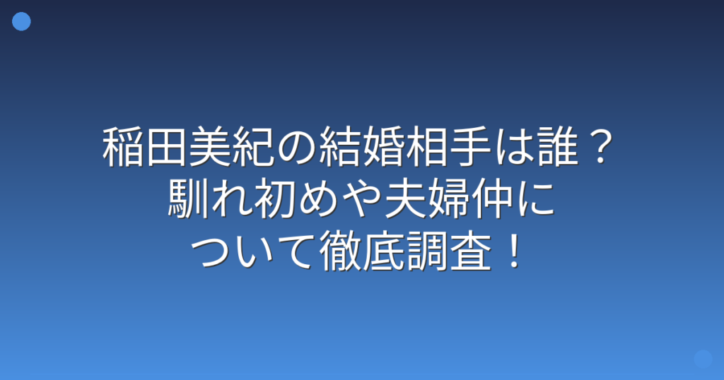 稲田美紀の結婚相手は誰?馴れ初めや夫婦仲について徹底調査!