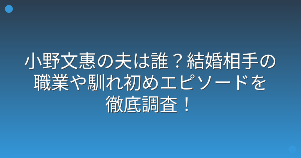 小野文惠の夫は誰?結婚相手の職業や馴れ初めエピソードを徹底調査!