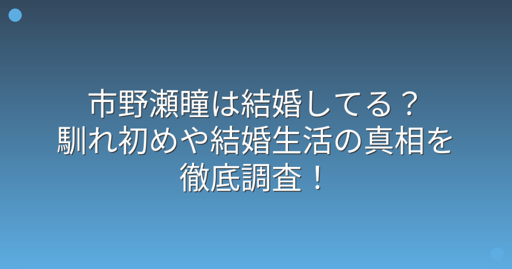 市野瀬瞳は結婚してる?馴れ初めや結婚生活の真相を徹底調査!