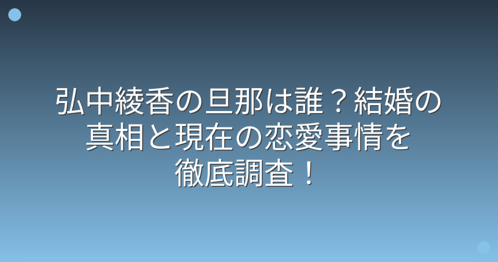 弘中綾香の旦那は誰?結婚の真相と現在の恋愛事情を徹底調査!