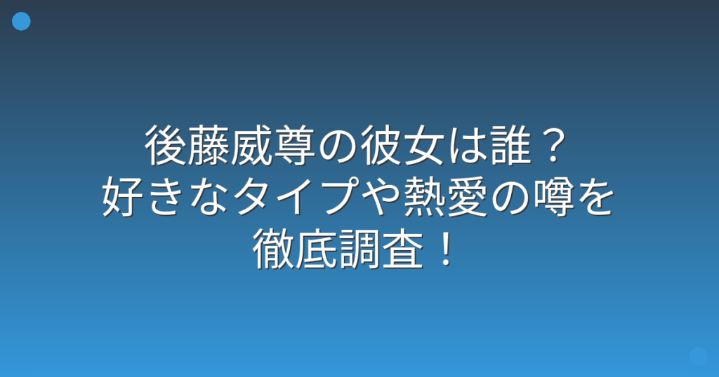 後藤威尊の彼女は誰?好きなタイプや熱愛の噂を徹底調査!