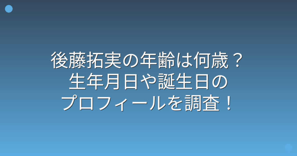 後藤拓実の年齢は何歳?生年月日や誕生日のプロフィールを調査!