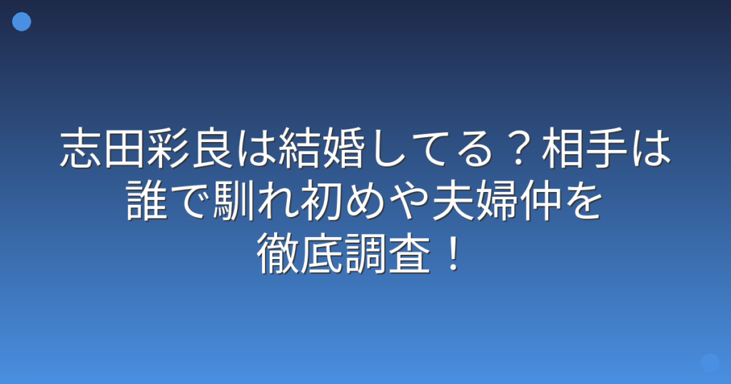 志田彩良は結婚してる?相手は誰で馴れ初めや夫婦仲を徹底調査!