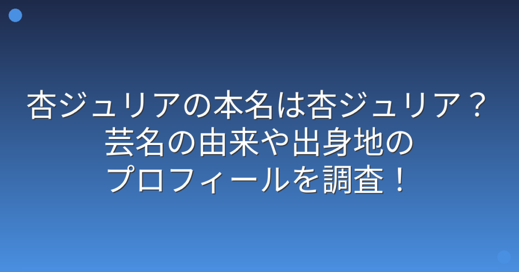 杏ジュリアの本名は杏ジュリア?芸名の由来や出身地のプロフィールを調査!