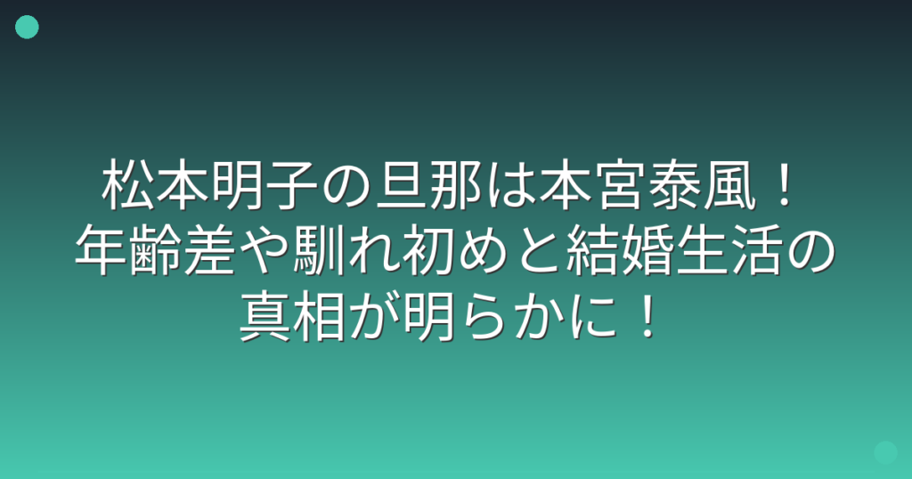 松本明子の旦那は本宮泰風!年齢差や馴れ初めと結婚生活の真相が明らかに!