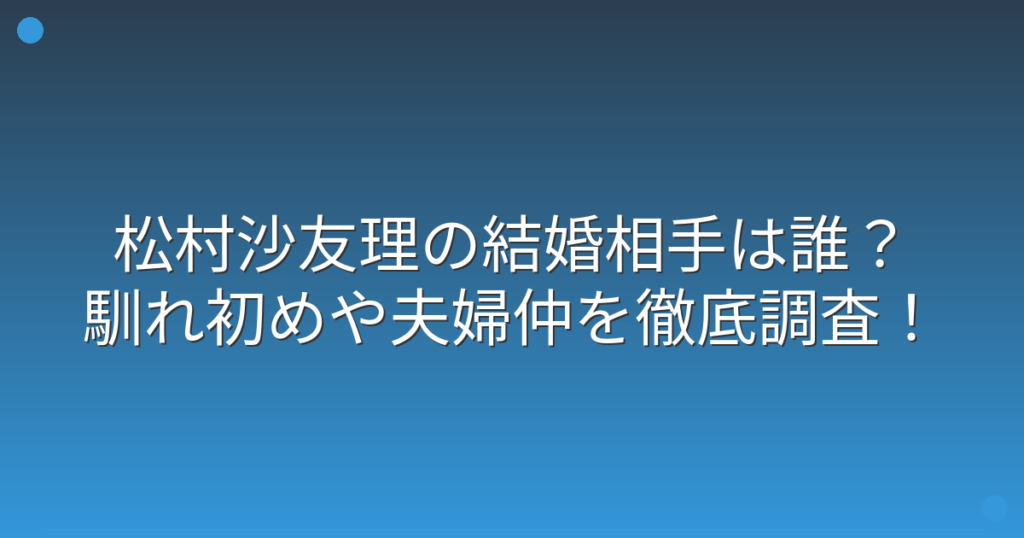 松村沙友理の結婚相手は誰?馴れ初めや夫婦仲を徹底調査!