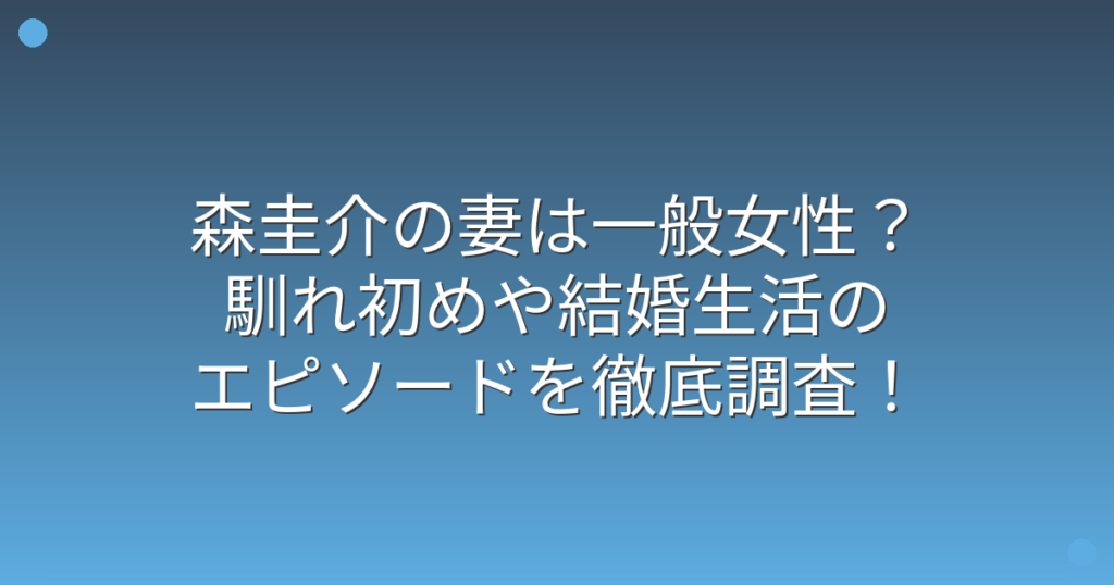 森圭介の妻は一般女性?馴れ初めや結婚生活のエピソードを徹底調査!