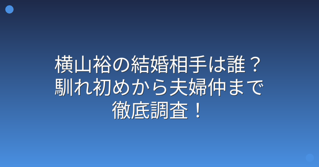 横山裕の結婚相手は誰?馴れ初めから夫婦仲まで徹底調査!