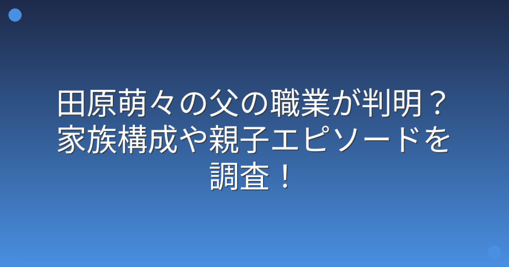 乃木坂46の人気メンバーとして活躍している田原萌々さんですが、彼女の父親について気になっている方も多いのではないでしょうか。 アイドルの家族構成や親子関係は、ファンにとって興味深い話題ですよね。 そこで今回は、田原萌々さんの父親の職業や家族...