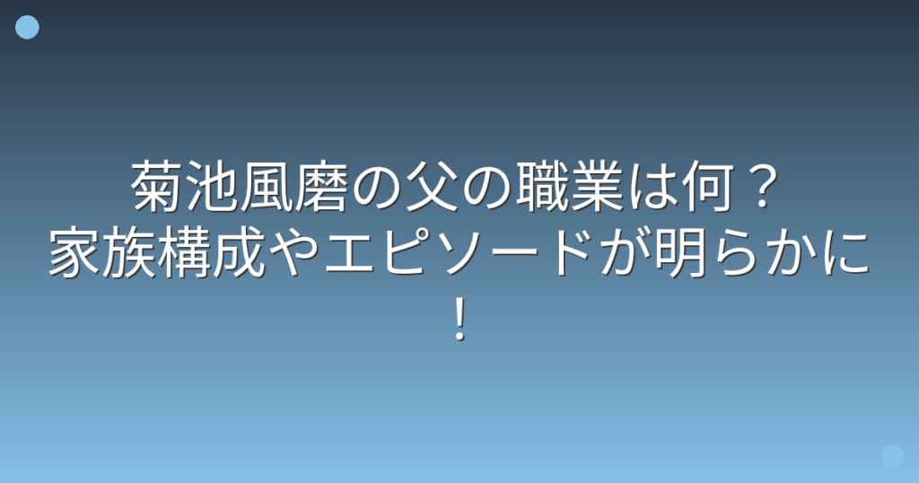 Sexy Zoneのメンバーとして活躍し、俳優としても高い評価を得ている菊池風磨さん。 そんな菊池風磨さんの父親について、ファンの間で関心が高まっていますね。 多才な菊池風磨さんを育てた父親とは、一体どんな方なのでしょうか。 そこで今回は、菊池風磨... -