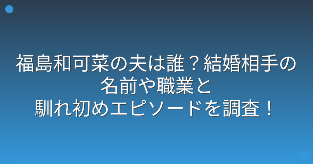 福島和可菜の夫は誰?結婚相手の名前や職業と馴れ初めエピソードを調査!