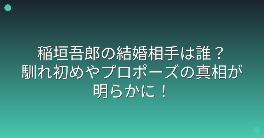 稲垣吾郎の結婚相手は誰?馴れ初めやプロポーズの真相が明らかに!