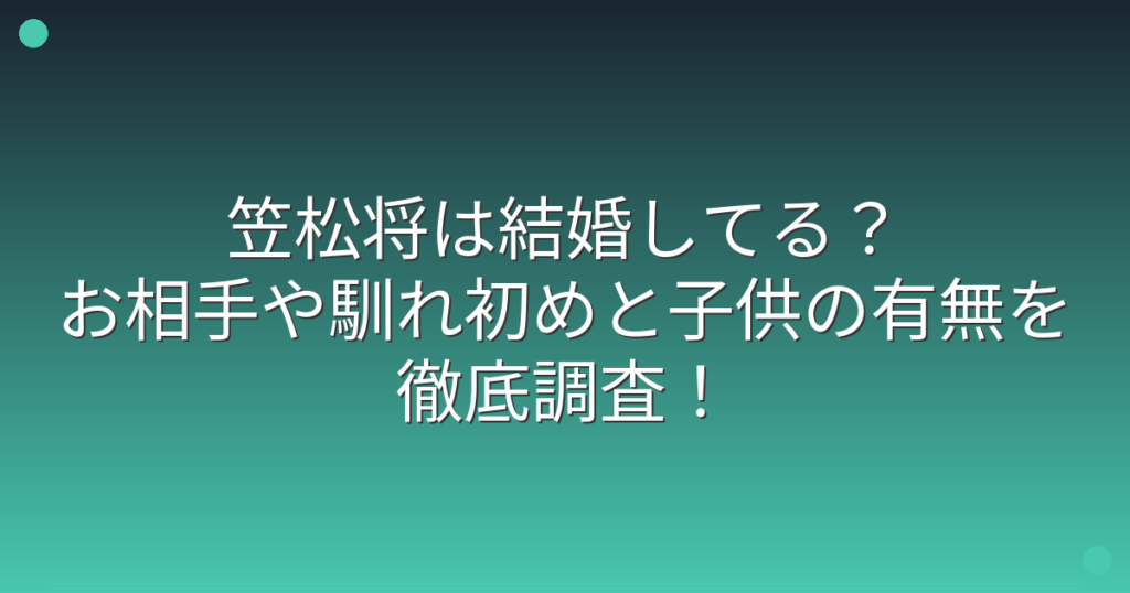 笠松将は結婚してる?お相手や馴れ初めと子供の有無を徹底調査!