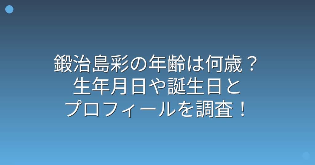 鍛治島彩さんの年齢について、ファンの間で話題になっていますね。 注目を集めている鍛治島彩さんですが、実際の年齢や生年月日が気になっている方も多いのではないでしょうか。 そこで今回は、鍛治島彩さの年齢や生年月日、誕生日などのプロフィール情報...