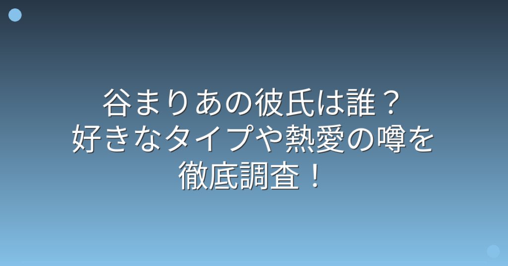 谷まりあの彼氏は誰?好きなタイプや熱愛の噂を徹底調査!