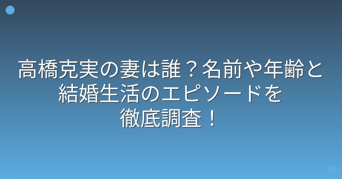 特に高橋克実さんの妻について気になっている方も多いのではないでしょうか。