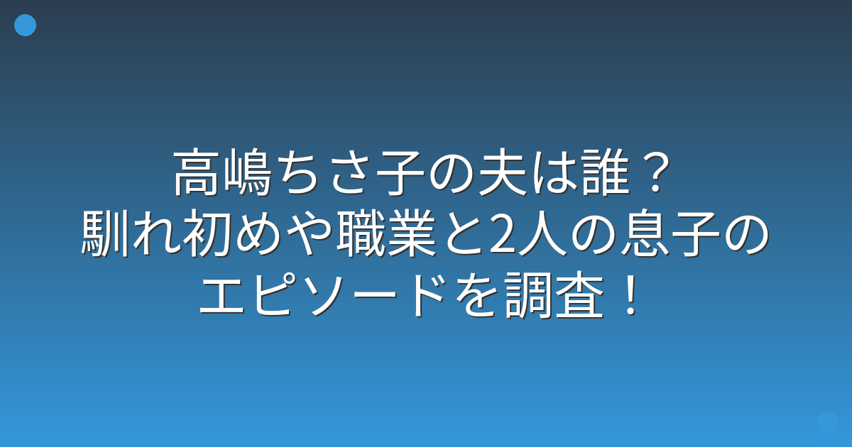 今回は、高嶋ちさ子さんの夫の職業や馴れ初め、そして2人の息子さんとのエピソードについてお伝えしてきました。