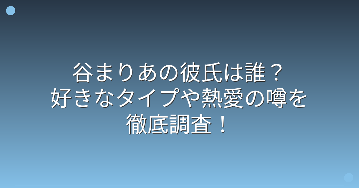 今回は、谷まりあさんの彼氏の有無や熱愛の噂、恋愛観について、分かっている情報をもとに丁寧に整理してご紹介します。