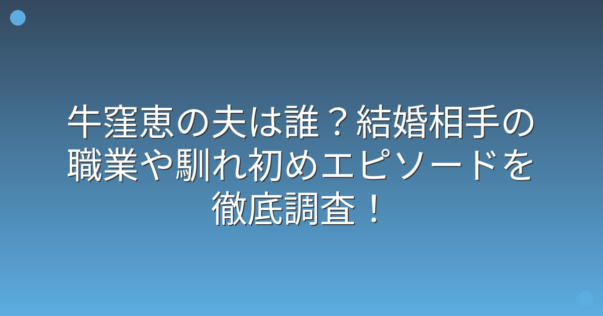 牛窪恵さんと夫の馴れ初めについては、詳細な情報は公開されていません。