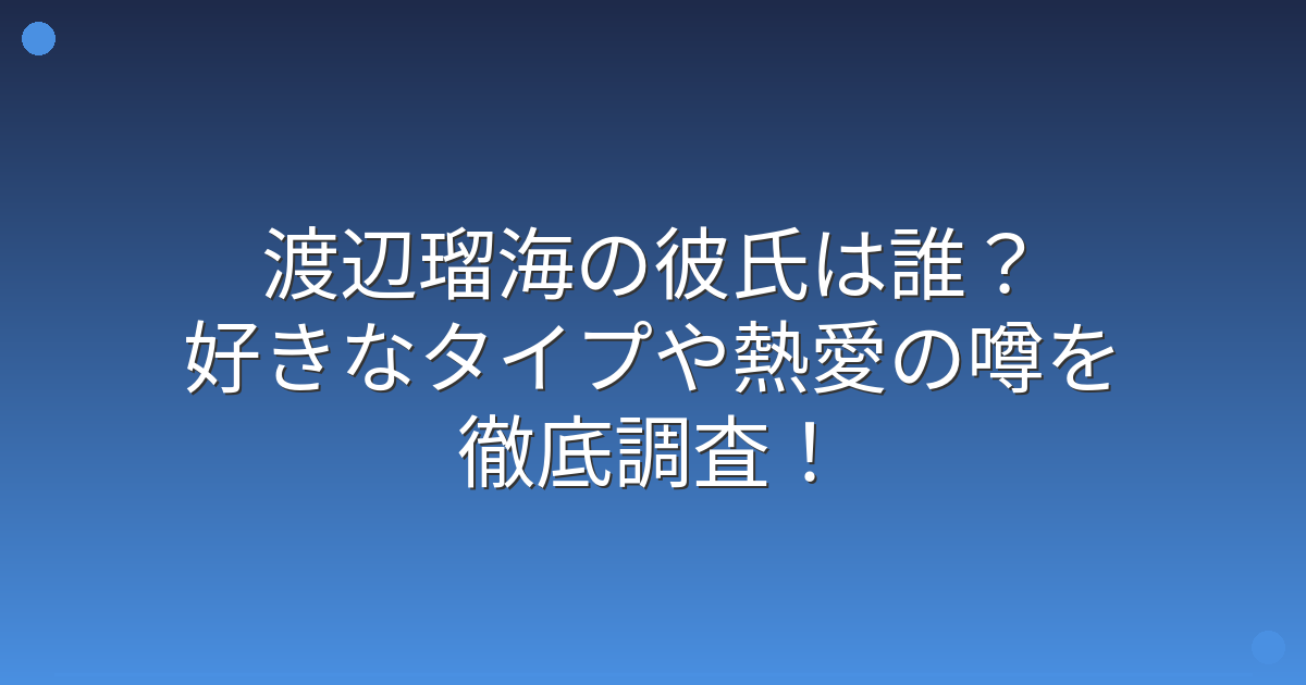 複数の報道やSNSでの情報を調べたところ、現時点では渡辺瑠海さんに彼氏がいるという確かな情報は見つかりませんでした。
