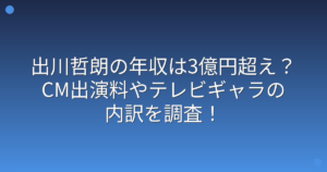 さらにCM出演料も大きな収入源となっており、1本あたり数千万円のギャラが相場と言われています。