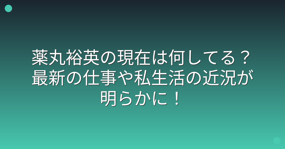 元シブがき隊のメンバーとして活躍し、その後は俳優やタレントとして幅広く活動してきた薬丸裕英さんですが、最近の活動が気になっている方も多いのではないでしょうか。