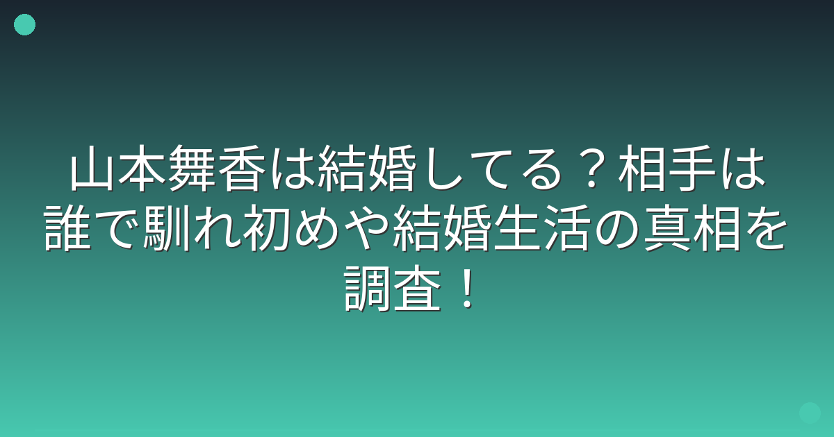 結論から申し上げますと、山本舞香さんは現在結婚していません。