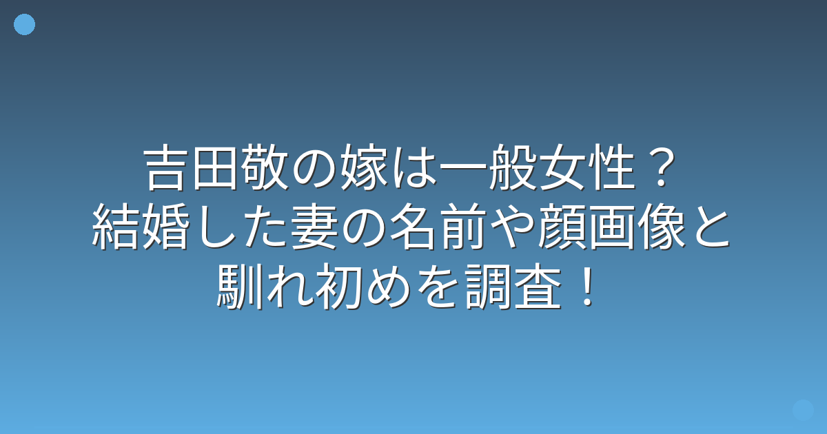 吉田敬さんと奥様の馴れ初めについては、関係者の話では知人の紹介で出会ったという情報があります。