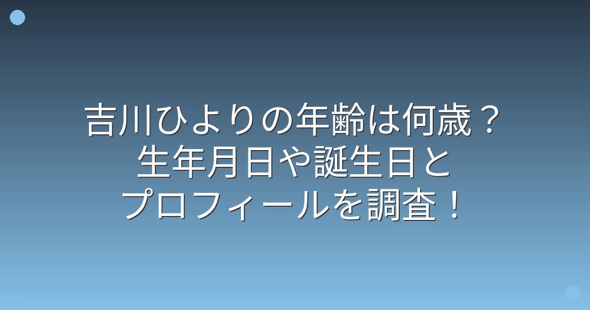 そこで今回は、吉川ひよりさんの年齢や生年月日、プロフィールについて詳しく見ていきましょう!